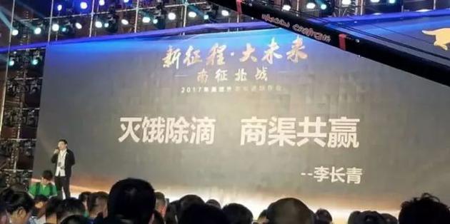 3月14日,一张美团外卖渠道部2017年年会现场照片让美团再次成为焦点。照片显示,美团外卖高管李长青,在现场提出的口号为“灭饿除滴,商渠共赢”。